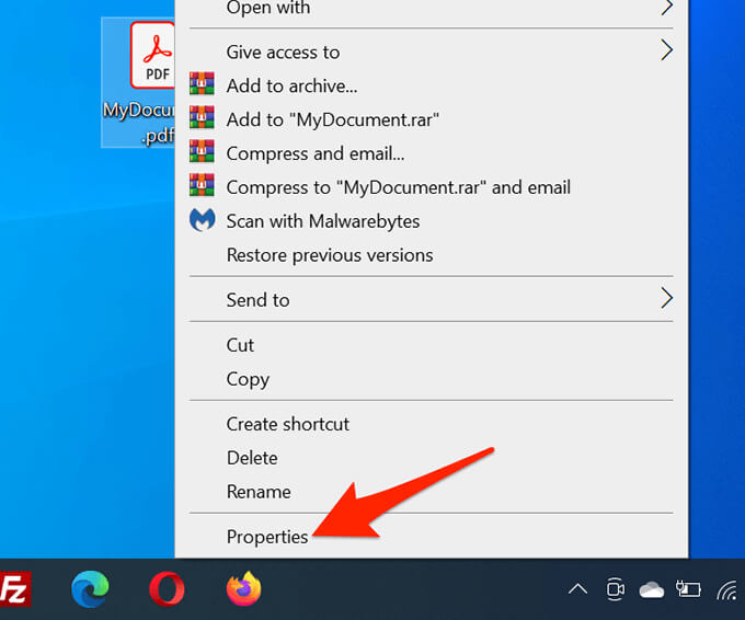 - Right-click the file and select Properties.