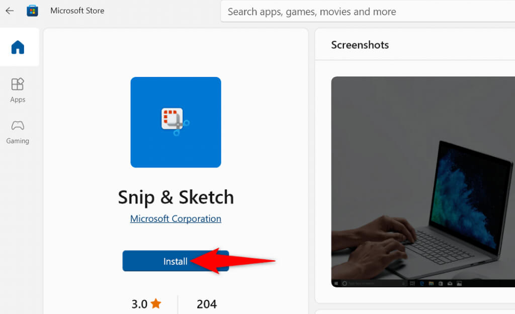 - Select **Uninstall** in the prompt. * Open the **Start** menu, search for **Microsoft Store**, and select the item on the list. * Search for and select **Snip & Sketch** in the Store.