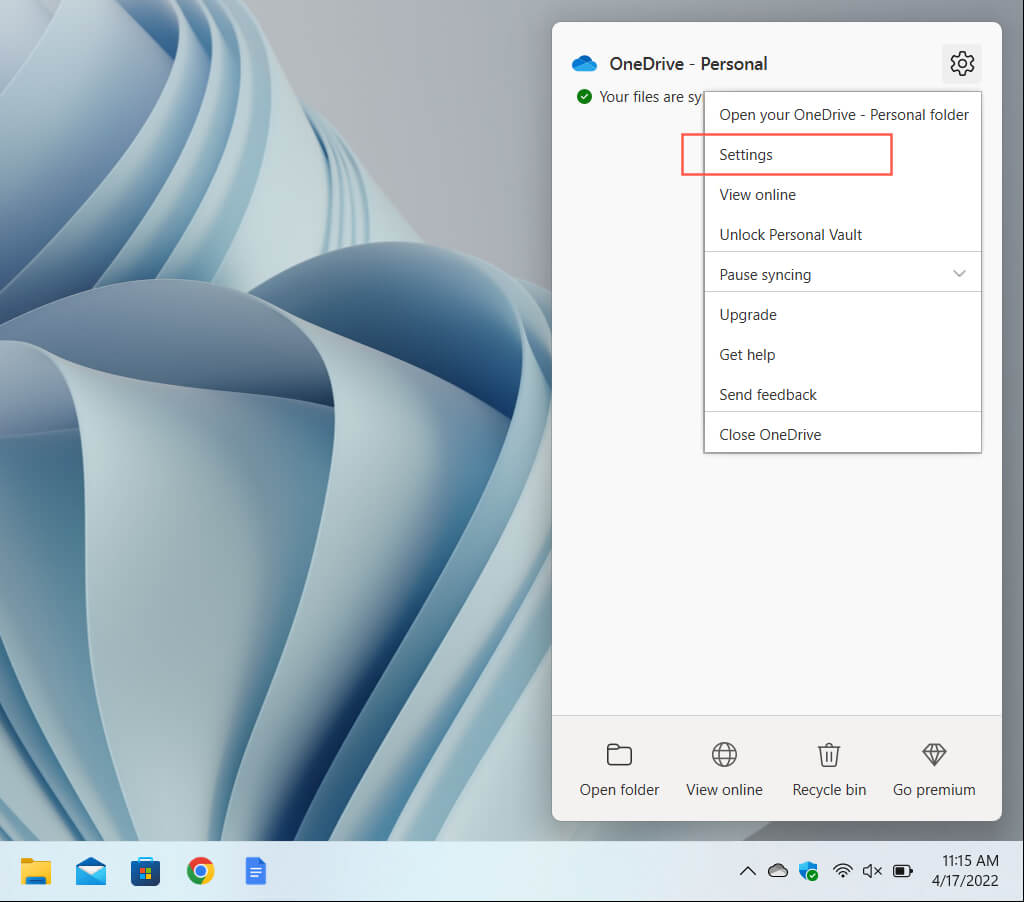 Exit OneDrive’s Settings screen.