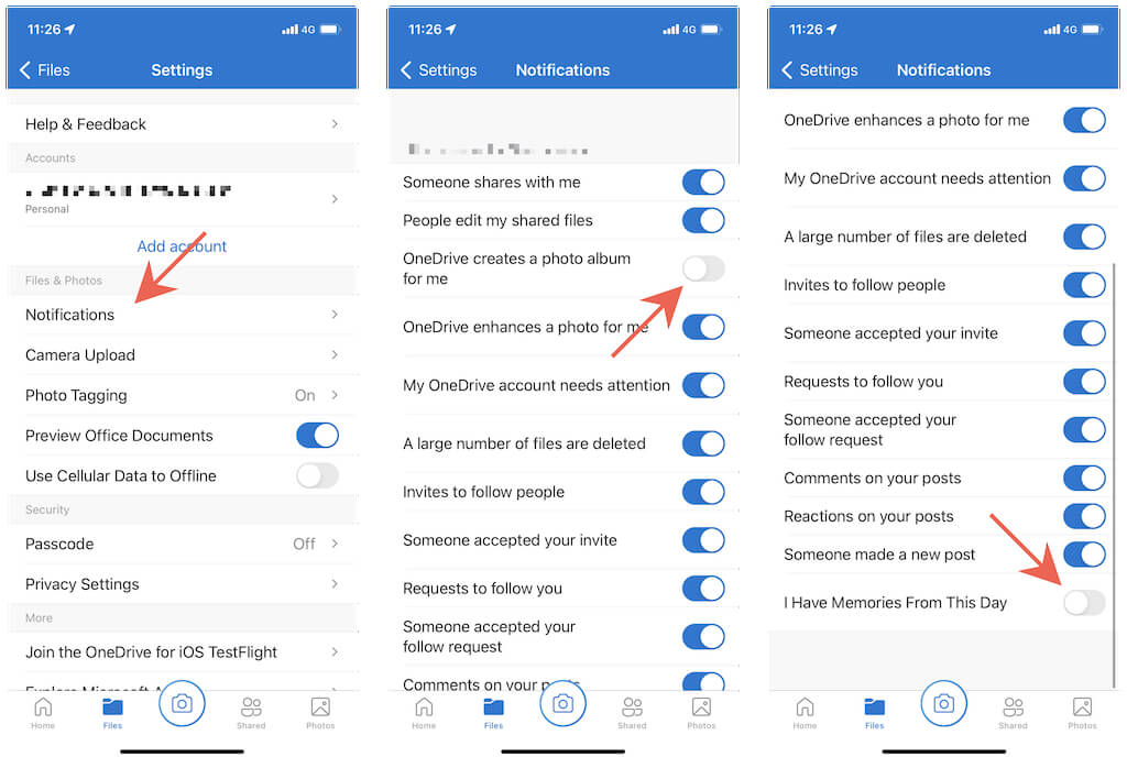 “On this day” notifications can also show up on iOS and Android smartphones, but you can disable them without turning off all OneDrive notifications like on the PC. Just note that the process is slightly different on the iOS and Android versions of the OneDrive app.