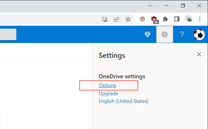 Select the gear-shaped Settings icon at the top-right corner of the browser tab and select Options.