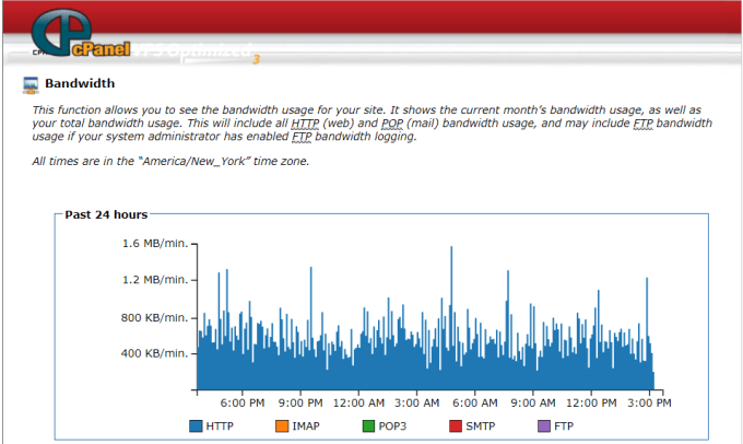 A normal bandwidth chart for the last 24 hours should show a relatively constant line, with the exception of a few small spikes.