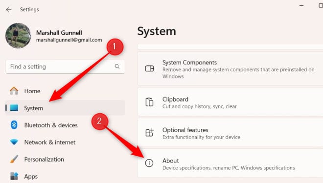 - Click System > About.