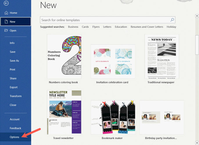 - * Open your Word document, go to the File tab, and select Options on the bottom left.