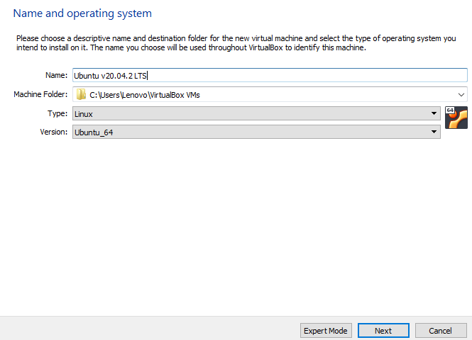 - * Give your Virtual Machine a Name, for instance, Ubuntu v20.04.2 LTS.