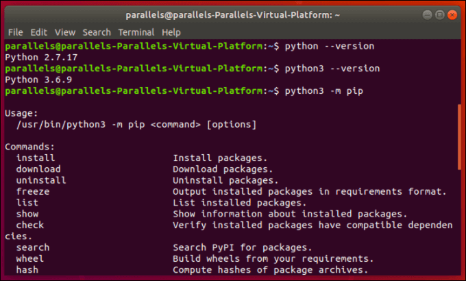 If you’re using Python 3.4 or above (or Python 2.7.9 or above), you don’t need to install PIP on Linux, as it’s already installed. Check this by opening a terminal window and typing python3 –version to check your installed Python version, then use python -m pip or python3 -m pip to use it.