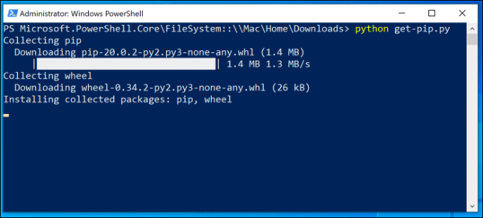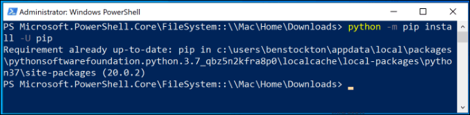 This should automatically install Python PIP for you to use. You can then run it from a PowerShell or command line window by typing **pip** or **python -m pip**.