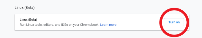 If you don’t see this option, it means that your device isn’t supported. You will need to upgrade to a newer model to use Linux apps.