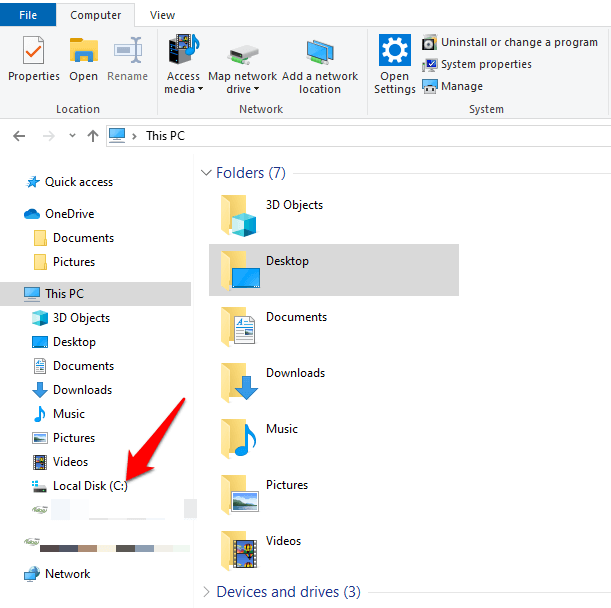 - Open File Explorer and click on Local Disk C:.