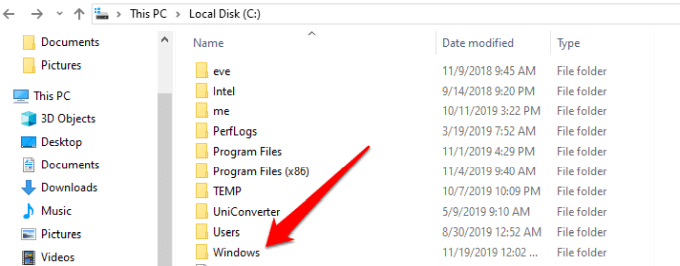 - Click Windows and find the TEMP folder.