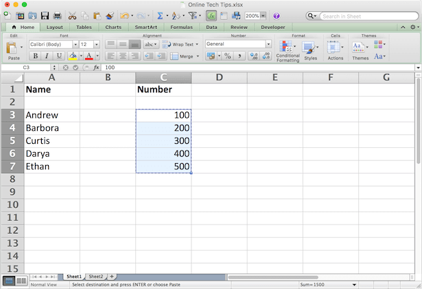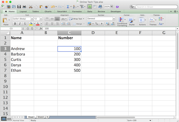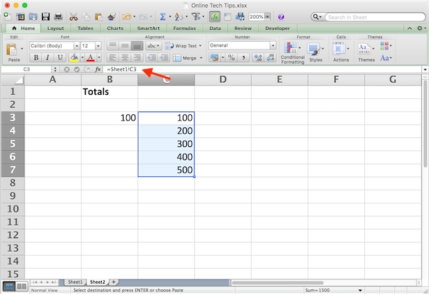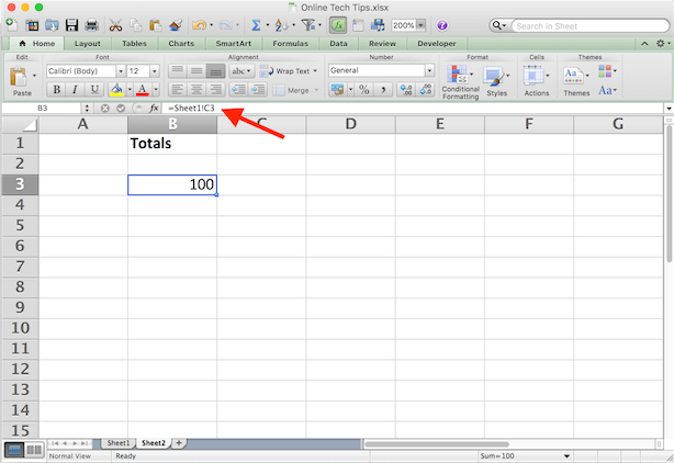 - Switch to the original file (Online Tech Tips), and click on the cell that you want to link to.