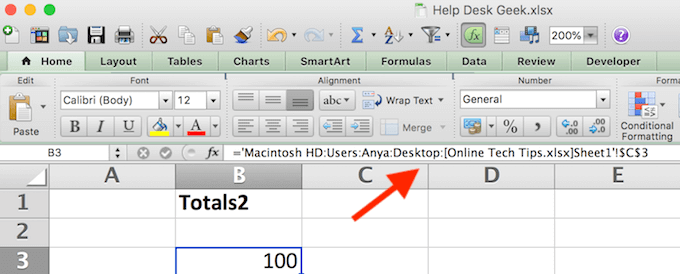 If you close the original Excel file and look at the formula again, you will see that it now also has the entire document’s location. Meaning that if you move the original file that you linked to another place or rename it, the links will stop working. That’s why it’s more reliable to keep all the important data in the same Excel file.