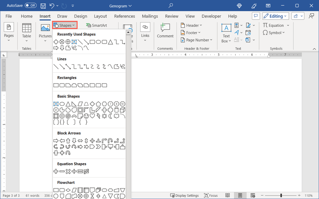 Using Word’s built-in shape and text box features, you can create a genogram from a blank slate. This allows you to customize the shapes, arrange the elements as needed, and add the extra details you want.