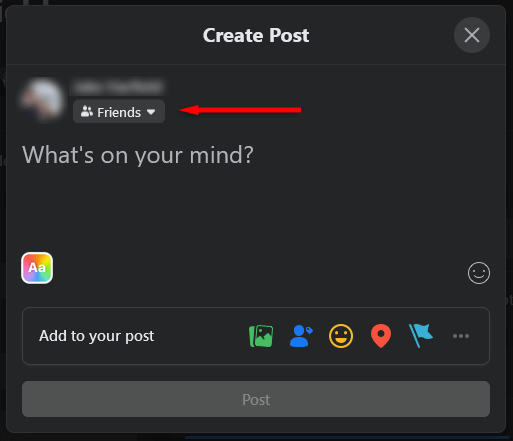 - Underneath your profile name, select the post audience pop-up menu.