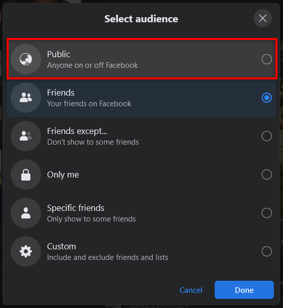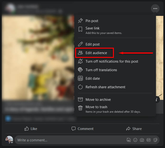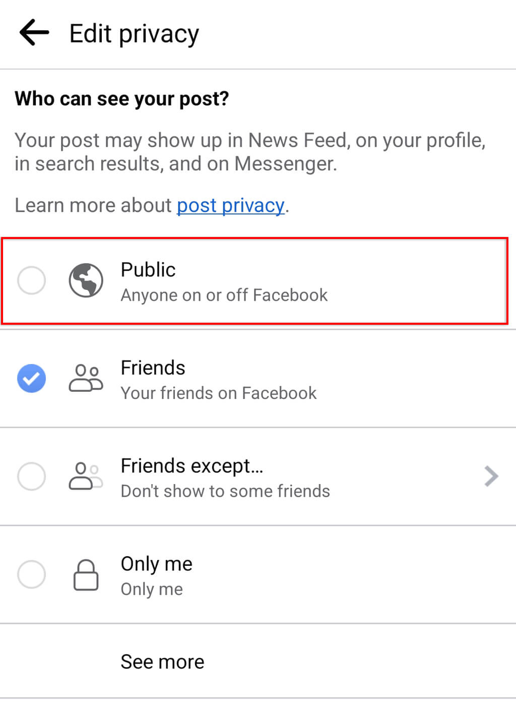Note: You can select Edit Post, then on the audience drop-down menu, choose Public.