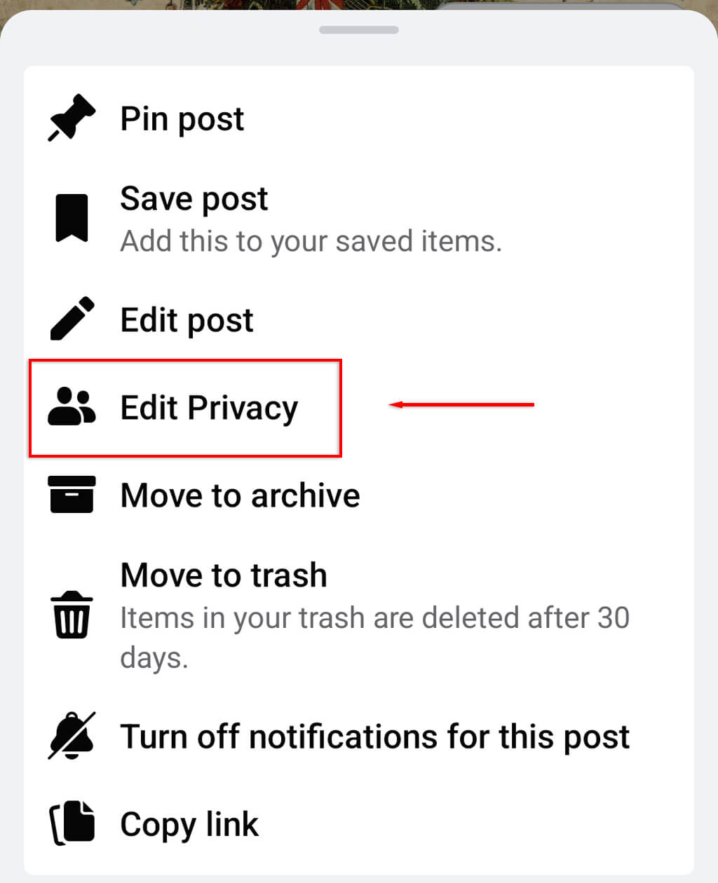 - Select the three horizontal dots at the upper-right corner of your post.