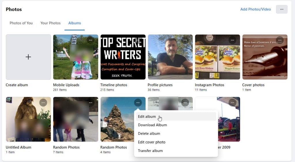 - Find the album you want to change privacy options for and select the three dots at the top right corner. Select **Edit album**.