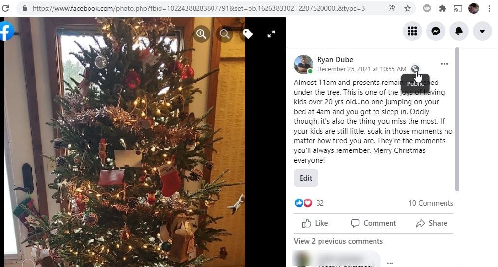 - With the photo open, select the privacy icon at the upper right of that photo post.