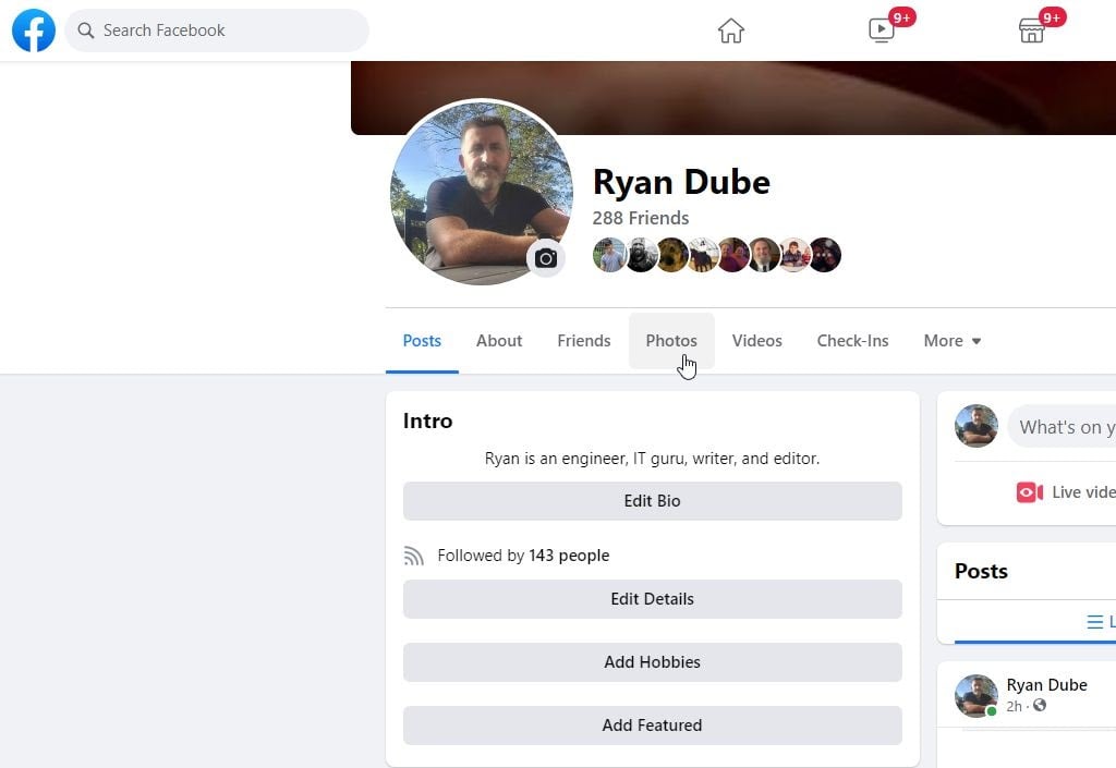 - * Open Facebook and go to your Facebook profile page. Select the Photos tab.