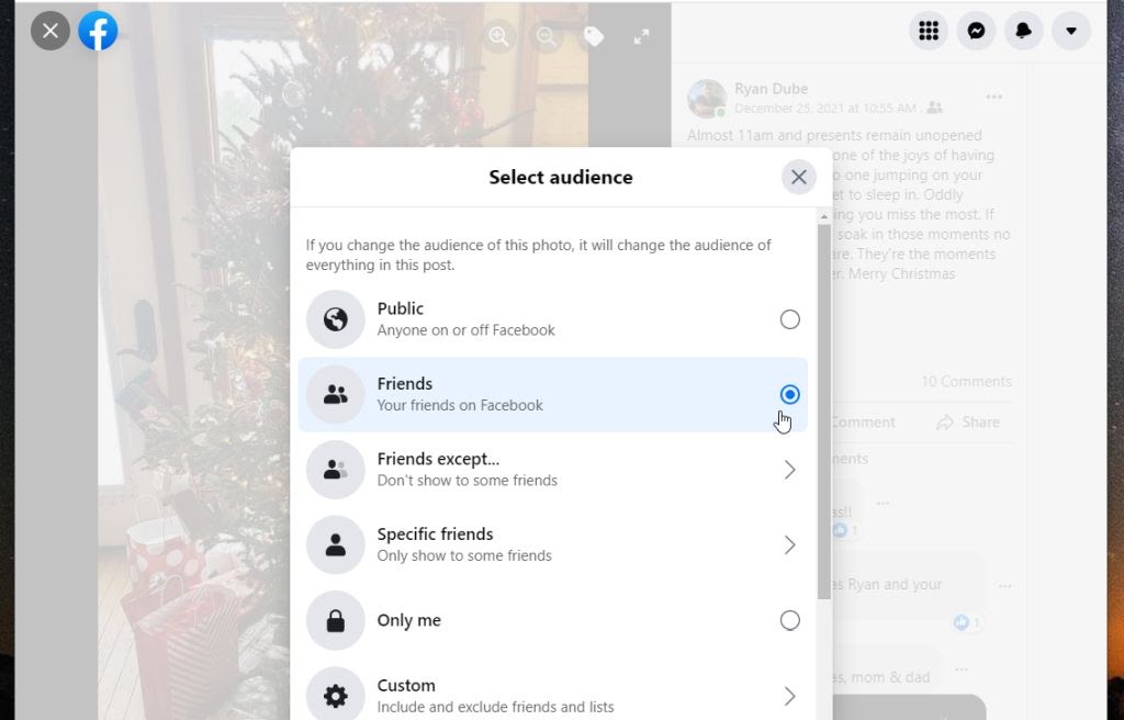 - Select anything other than Public in the list of audience options to make the photo private.
