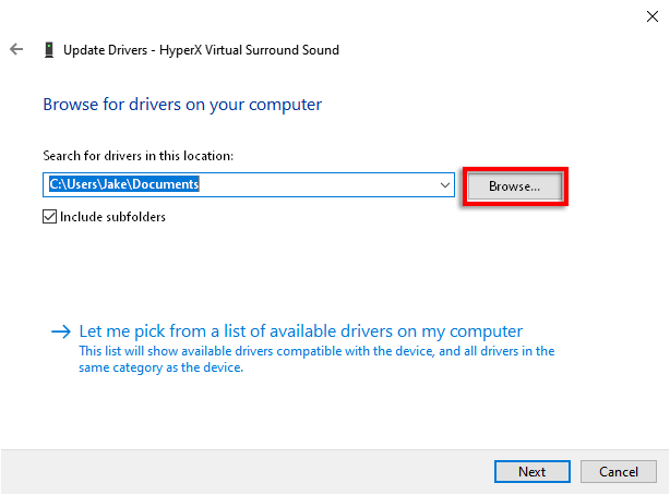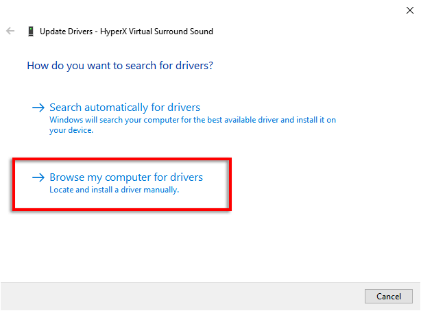 - Select **Browse my computer for drivers**.
