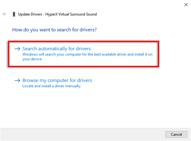 - Click **Search automatically for drivers**.