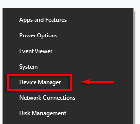 - Right-click the Start Menu (in the taskbar) and select Device Manager.