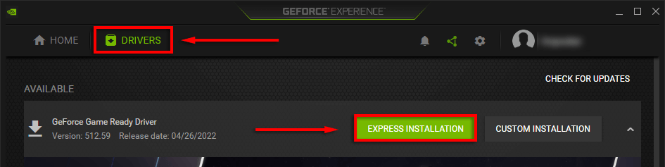 For example, with GeForce, select the **DRIVERS **tab and click EXPRESS INSTALLATION.