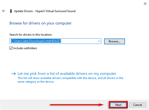 - Navigate to the folder with the downloaded drivers, make sure **Include subfolders **is ticked, and press **OK**.