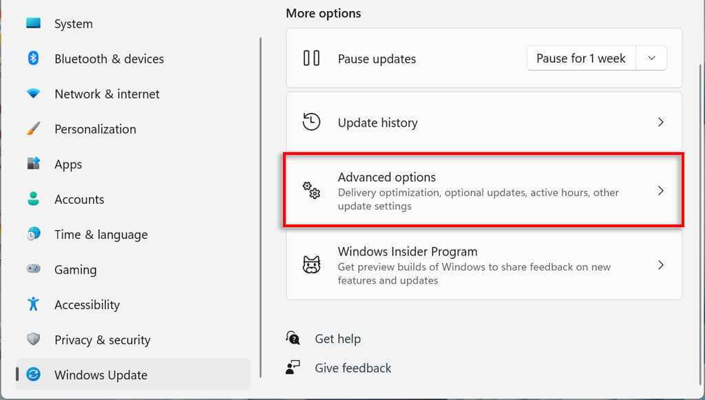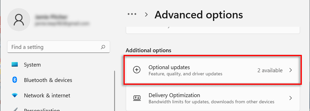 - Scroll down to the **Additional options **section and click **Optional updates**.