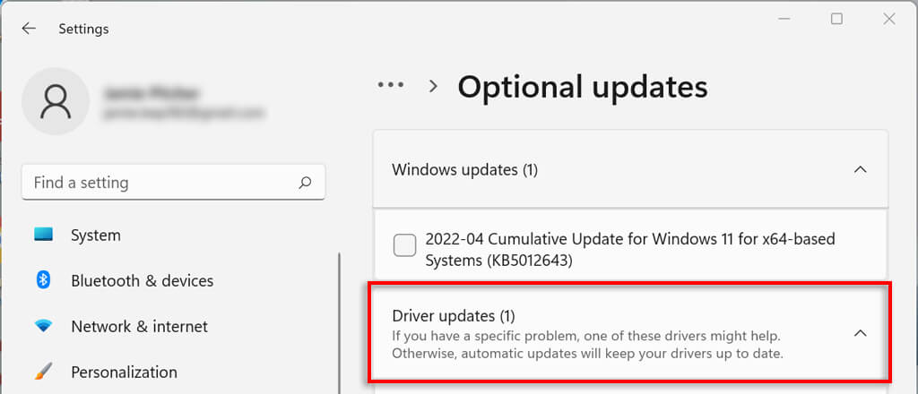 The easiest way to find device driver updates in Windows 11 is via the settings app.