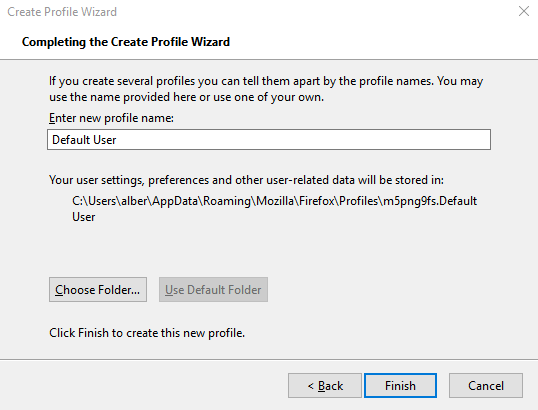 If everything’s in order, click Finish to exit the wizard. All that’s left is to select the newly created profile, exit Choose User Profile, and start Firefox.