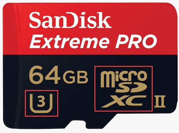 Quality can vary for SD cards. Make sure you only buy from a trusted brand. Samsung, SanDisk, PNY, Lexar, and Verbatim are amongst the best. Look for a microSDXC, UHS 3 card. They show The UHS number inside a U. These kinds read and write faster. Any rating will work, so go with the best microSD card you can afford.