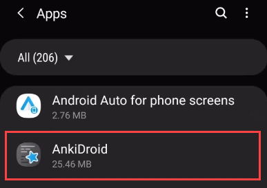 In this example, we’re moving the flashcard app, AnkiDroid.