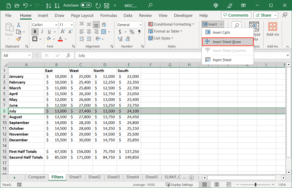 Before you use one of the methods below to move a row in Excel, you may want to insert an empty row. This is helpful if you’re moving the row between others that already contain data that you don’t want to overwrite.