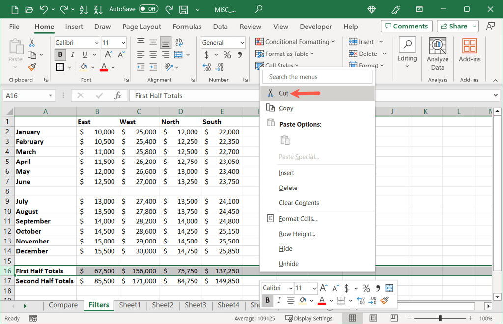 - Select the row(s) you want to move and use the Ctrl + Xshortcut on Windows or Command + X on Mac for the cut action.