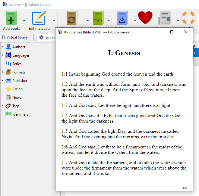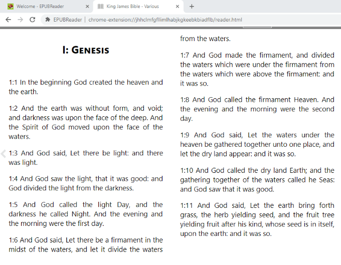 - An EPUB file will appear in a new window, which you can resize to your reading preferences.