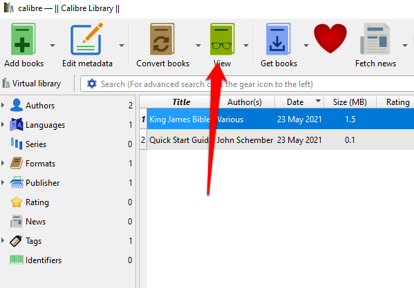 - Highlight the EPUB file in the main panel and select **View** at the top.