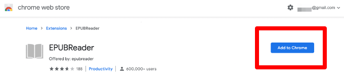 - On Chrome, find EPUBReader from the Chrome Web Store and select **Add to Chrome**.