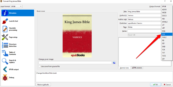 Open EPUB Files by Converting the EPUB file to PDF