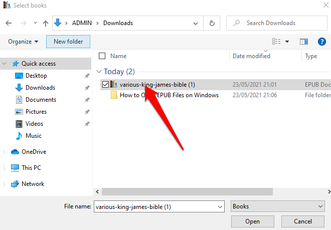 - Find and select the **EPUB****file** you want to open.