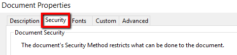 Under the **Properties **section, access the *Security *tab. Then go to the Security Method and enter your password.