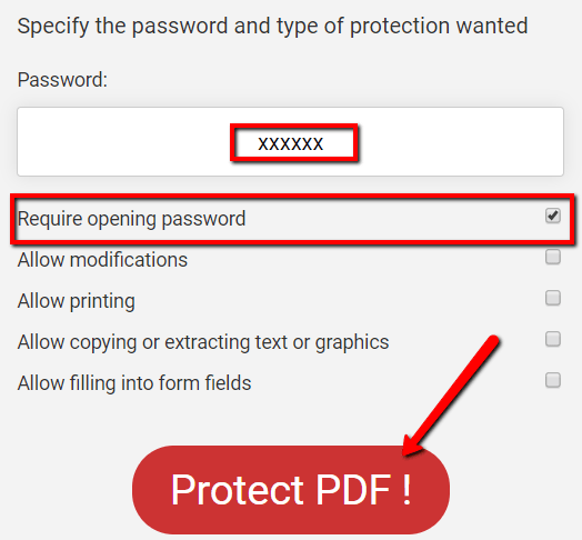 While at it, make sure you check the box that says “Require opening password”. And click Protect PDF!.