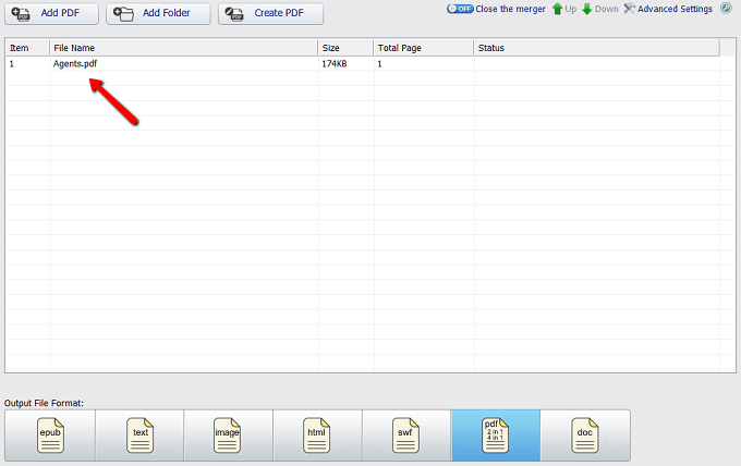 At the bottom of the program, choose PDF. It’s in the Output File Format.