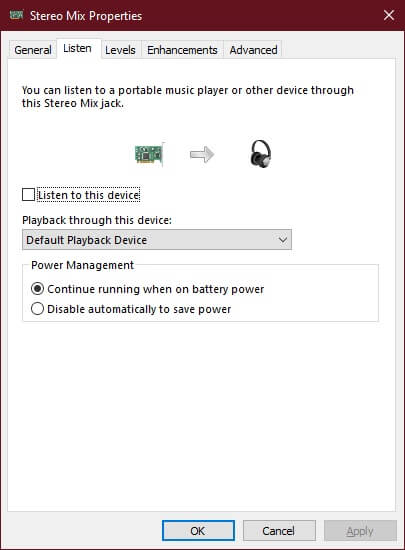 - Right-click on Stereo Mix again and select properties