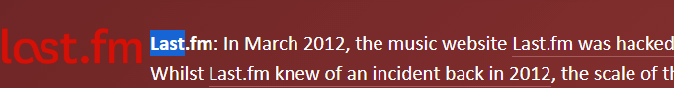 For example, if you had an account at last.fm and used the password – secretpassword123, any accounts that share that password may be at risk too. You should change that password wherever you may be using it online.