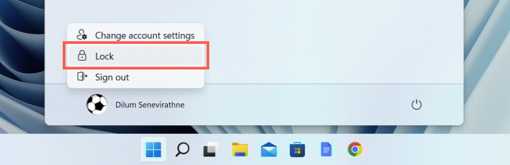 The most straightforward approach to locking your PC is simply to use the Start menu. Open it, select the User icon or your profile portrait, and choose the option labeled Lock.