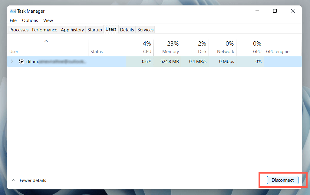 - Select the Disconnect option at the lower-right corner of the window.