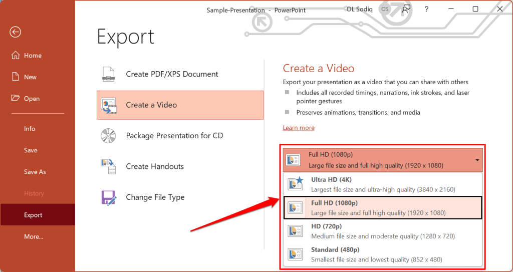 Export Recorded or Narrated Presentation