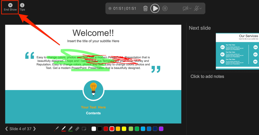 Select End Show in the top-left corner to close the recording tool on a Mac computer.